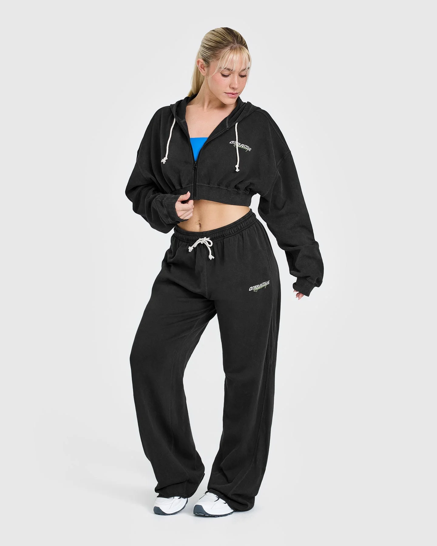 Raw Lounge Crop Zip Through Hoodie with Graphic | Washed Black